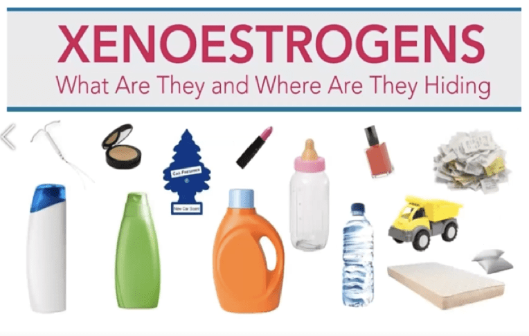 One major disruptor: xenoestrogens — man-made chemicals that mimic estrogen and confuse your body’s natural hormone signaling. These can be found in: